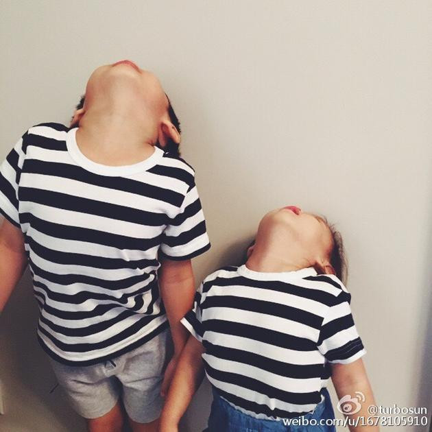 8月5日 娘娘孙俪在微博晒出一双儿女的照片,照片中等等与小花穿着同款黑白条纹短袖,都仰起头,虽看不到正脸,但等等与妹妹小花的模样还是十分吸睛。娘娘配文解释照片:“我说一二三来拍个合影,他们就是这样对我的[笑cry]”,网友喊话:“娘娘被整到,两位宝宝真的是鬼马可爱”。
